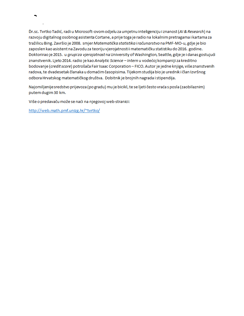 Kratki životopis predavača nalazi se u privitku.